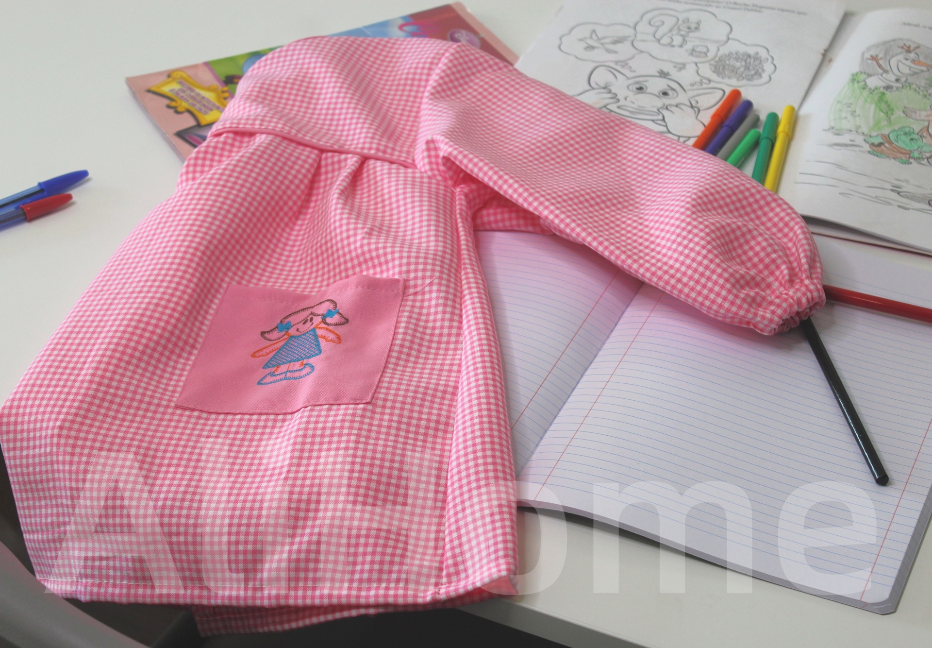 Bata escolar menina rosa c/ Bordado