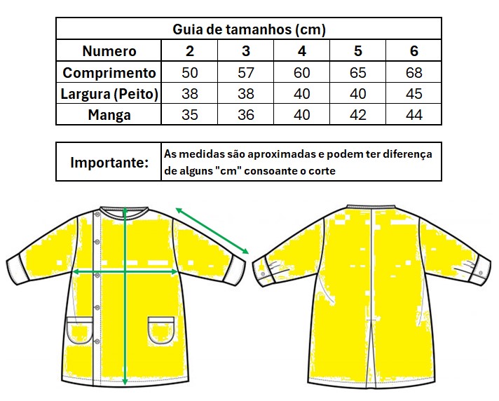 Importante: O tamanho vs idade pode variar consoante a criança, p.f. consulte as medidas na nossa tabela de guia de tamanhos