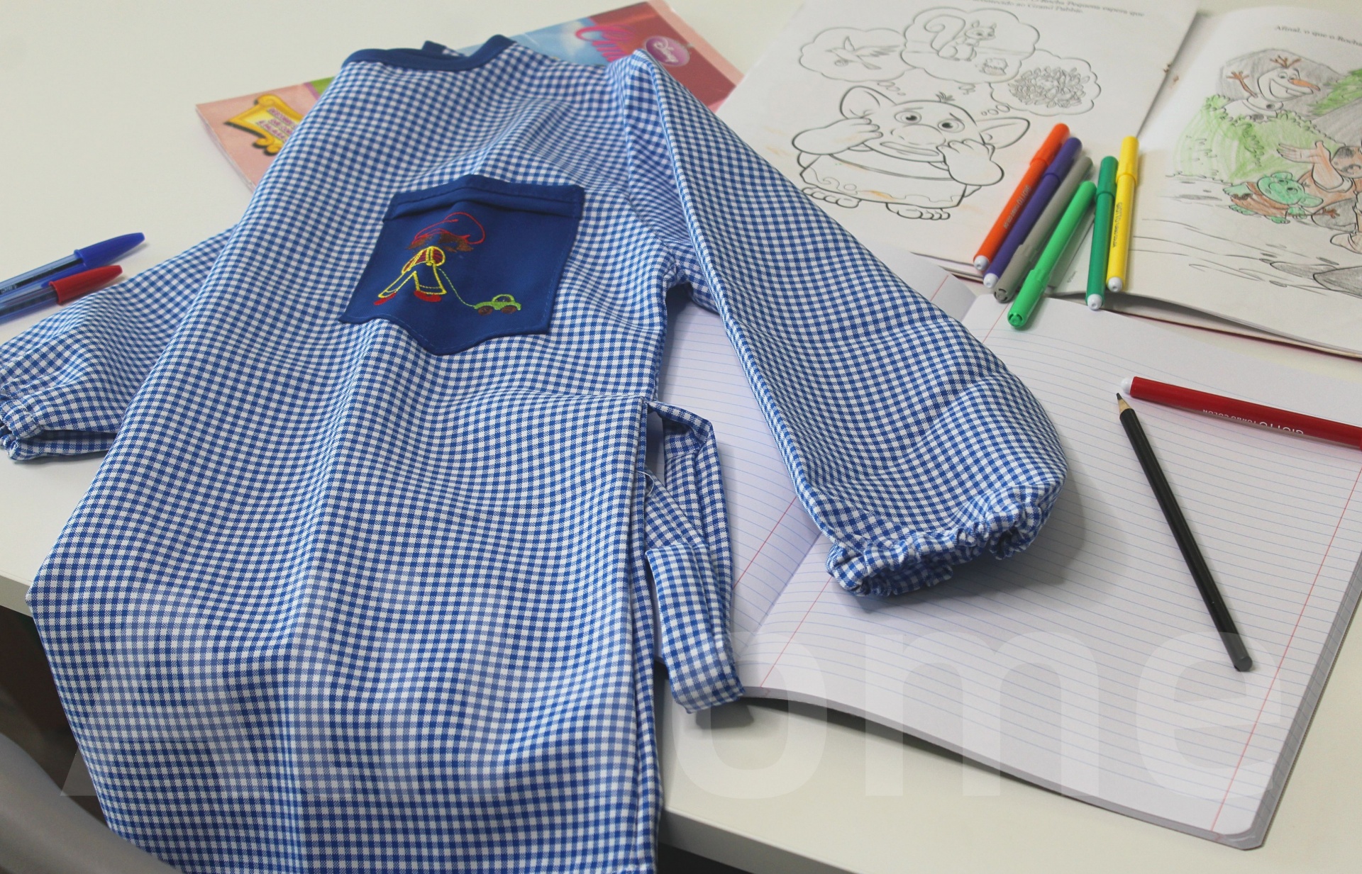 Bata escolar menino azul c/ Bordado