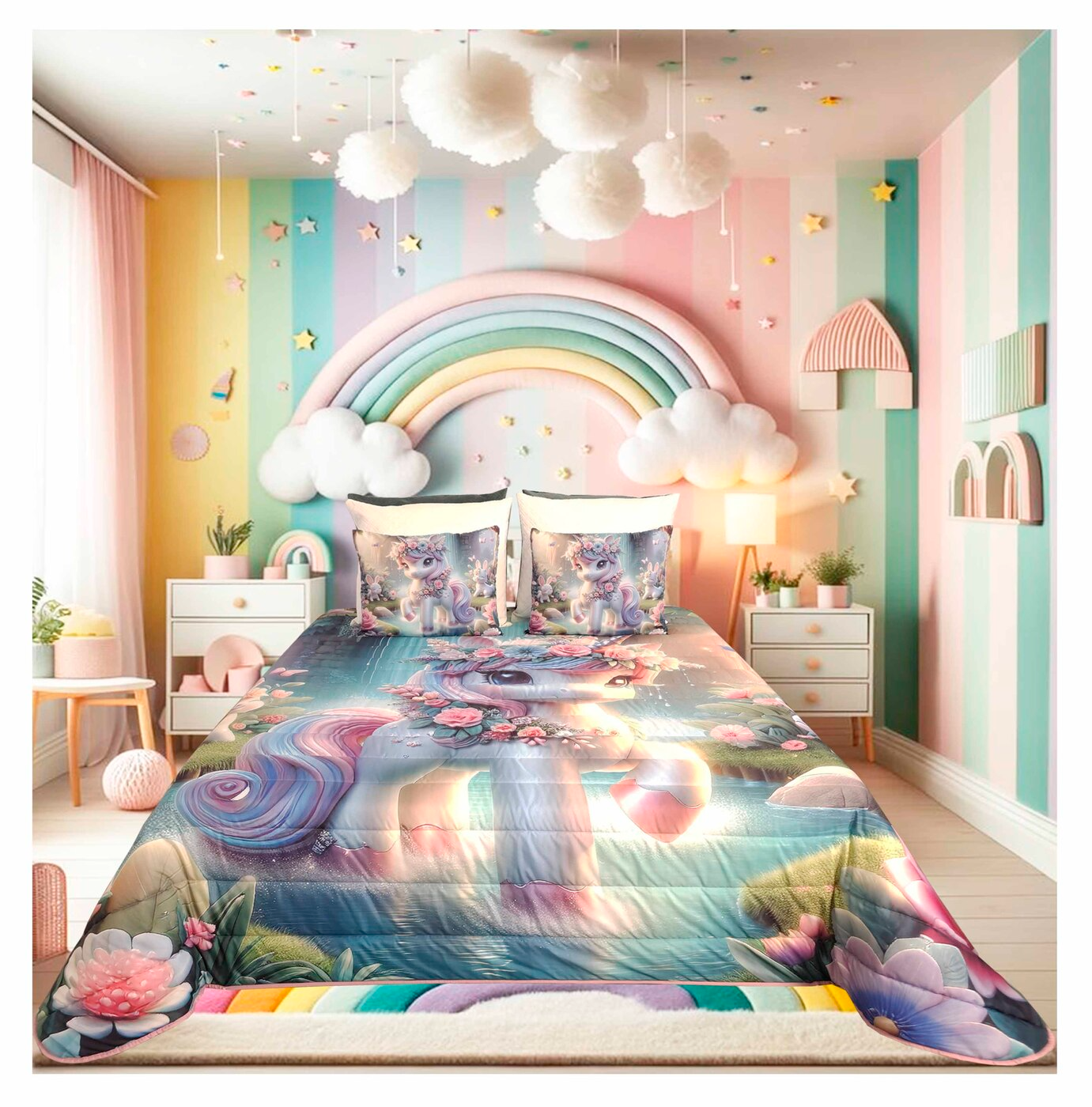 O Edredon Infantil Unicórnio é a escolha perfeita para criar um ambiente mágico e encantador no quarto das crianças.