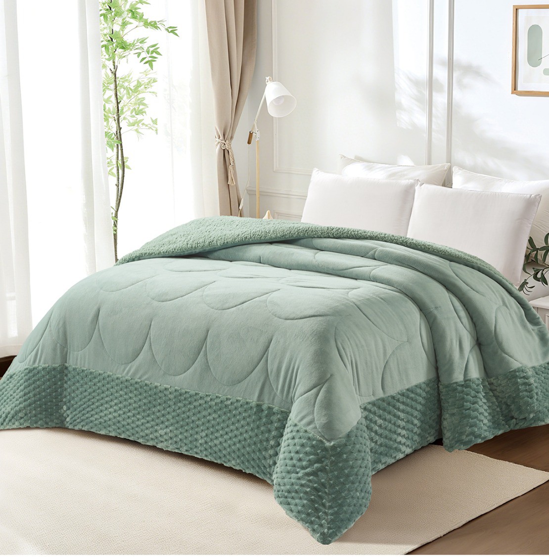 Home Edredões de Inverno Edredão Borrego AL– Mónaco Edredão Borrego AL– Mónaco 1 unidades em stock | SKU: SC-Monaco Medida Casal Cor Verde 49,90 € 54,90 € Desconto de %. Comprar Contactar Adicionar à wishlist Edredão fabricado em materiais de alta qualidade, leves e quentes, ideal para os dias mais frios de inverno. A sua parte superior é fabricada em tecido de sedalina extremamente macio. A sua parte interior é feita com pelo de borrego. É um edredão leve e extremamente quente, o seu acabamento macio e perfeito, torna-o ideal para lhe dar o descanso que merece. Medidas casal: 1x 240x260cm Sem almofadas Composição: 100% Poliéster Partilhar