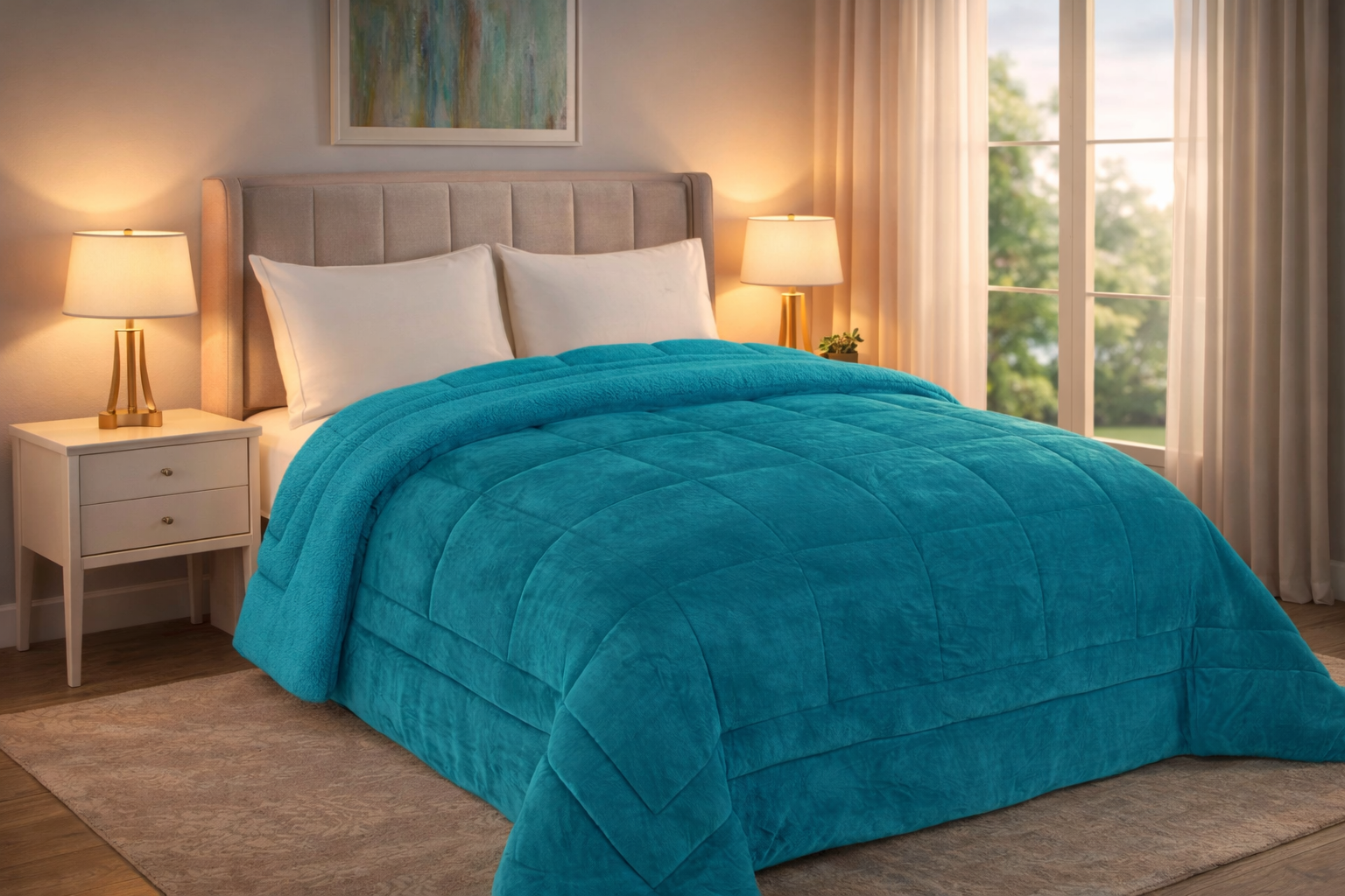 Home Edredões de Inverno Edredão Borrego AL–Soft Liso -15% Edredão Borrego AL–Soft Liso 2 unidades em stock | SKU: VT-Soft Medida Casal Cor Verde Azulado 50,92 € 59,90 € Desconto de 15%. Mês da Casa Desconto imediato de 8,99 € (15%) neste produto. Válido de 19 de Fevereiro de 2026 às 00:00 até 31 de Março de 2026 às 00:00. Comprar Contactar Adicionar à wishlist Super soft é um edredom fabricado em materiais de alta qualidade, leves e quentes, ideal para os dias mais frios de inverno. A sua parte superior é fabricada em tecido de sedalina extremamente macio. A sua parte interior é feita com pelo de borrego. É um edredão leve e extremamente quente, o seu acabamento macio e perfeito, torna-o ideal para lhe dar o descanso que merece. Medidas casal: 1x 240x260cm Sem almofadas Composição: 100% Poliéster Partilhar