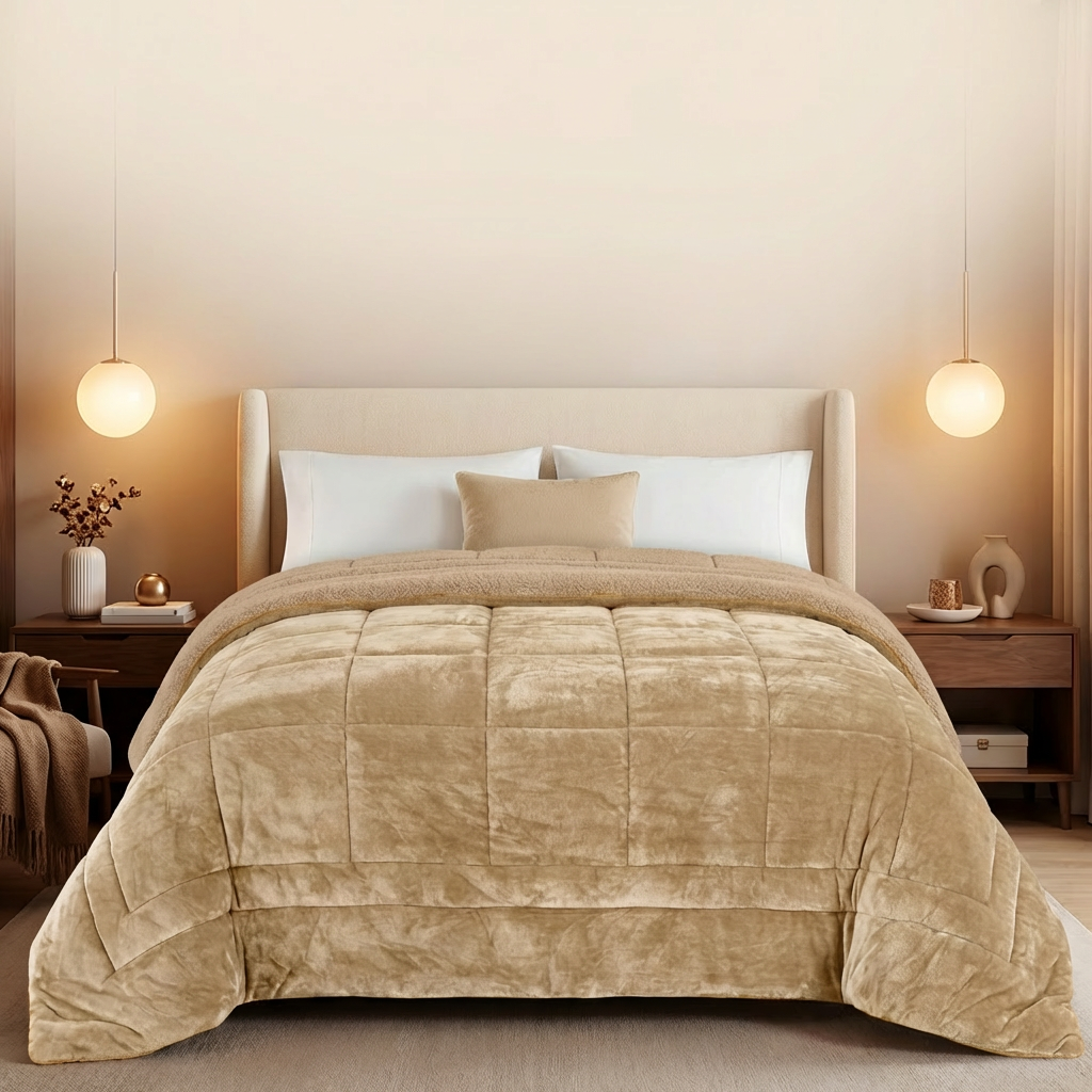 Home Edredões de Inverno Edredão Borrego AL–Soft Liso -15% Edredão Borrego AL–Soft Liso 2 unidades em stock | SKU: VT-Soft Medida Casal Cor Bege 50,92 € 59,90 € Desconto de 15%. Mês da Casa Desconto imediato de 8,99 € (15%) neste produto. Válido de 19 de Fevereiro de 2026 às 00:00 até 31 de Março de 2026 às 00:00. Comprar Contactar Adicionar à wishlist Super soft é um edredom fabricado em materiais de alta qualidade, leves e quentes, ideal para os dias mais frios de inverno. A sua parte superior é fabricada em tecido de sedalina extremamente macio. A sua parte interior é feita com pelo de borrego. É um edredão leve e extremamente quente, o seu acabamento macio e perfeito, torna-o ideal para lhe dar o descanso que merece. Medidas casal: 1x 240x260cm Sem almofadas Composição: 100% Poliéster Partilhar