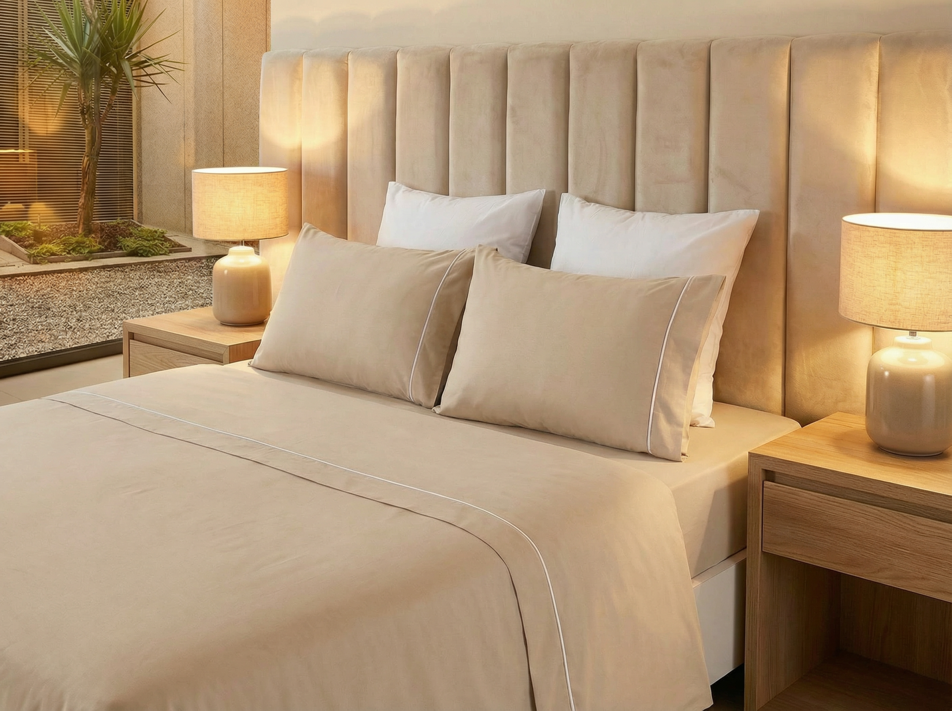 Home Lençóis de cama Jogo de cama AL-Mimosa -15% Jogo de cama AL-Mimosa SKU: V-Mimosa Cor Bege 15,22 € 17,90 € Desconto de 15%. Mês da Casa Desconto imediato de 2,69 € (15%) neste produto. Válido de 28 de Fevereiro de 2026 às 00:00 até 31 de Março de 2026 às 00:00. Comprar Contactar Adicionar à wishlist Jogo de cama confecionado em microfibra 100g/m2 de alta qualidade, com toque extra suave e sensação aconchegante semelhante ao algodão. Proporciona conforto e maciez para noites de sono mais difíceis. Tecido leve e confortável, além de ser fácil de lavar e secar. Cotton touchSuper suave Medida: Casal 240x280cm c/ajustável 160x200cm | Fronhas: 50x70cm Composição: 100% Poliéster Tags Jogo de camaLinha BásicaVerão Características Partilhar